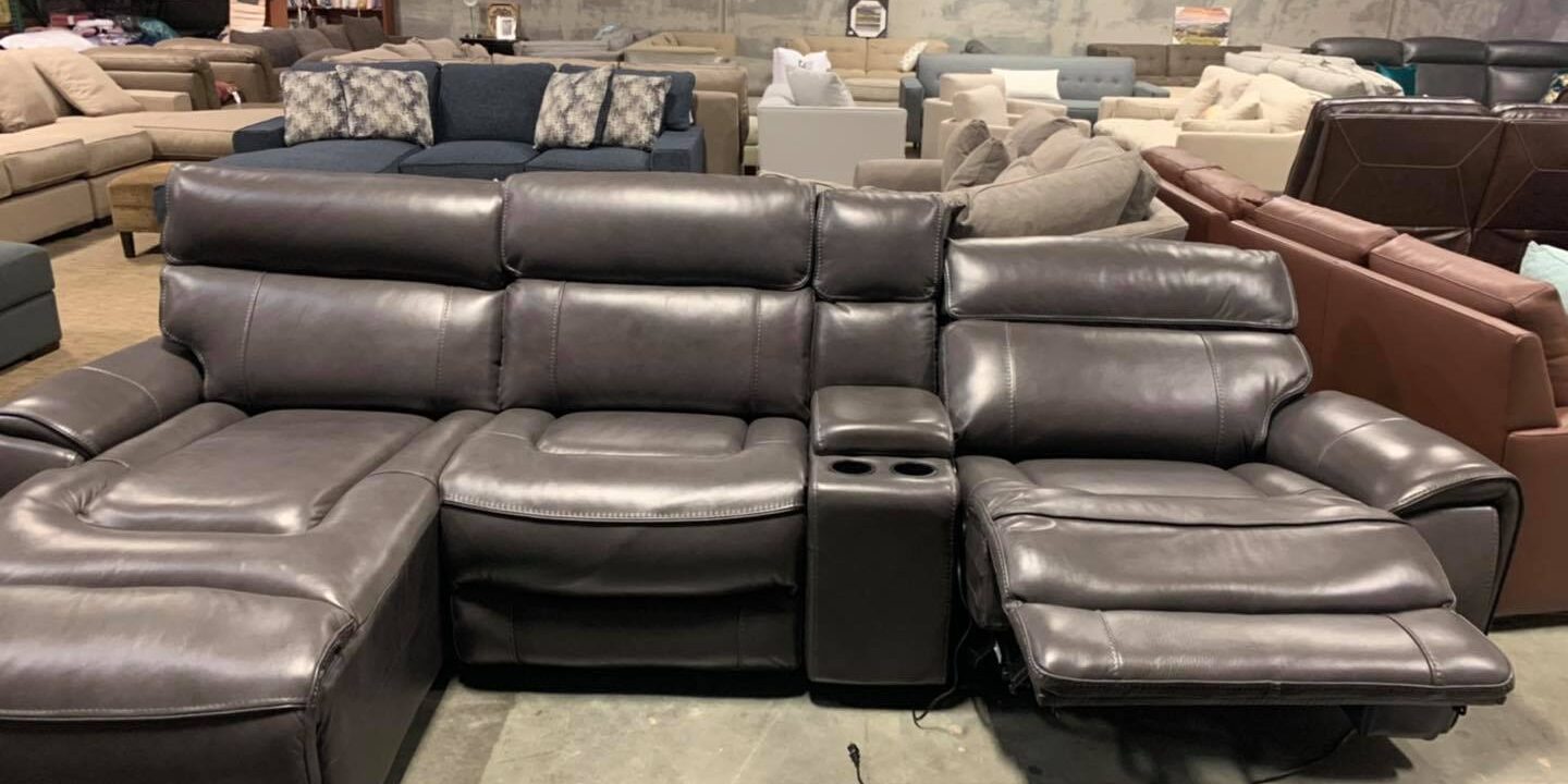 Hutchenson 4 Piece Leather sectional couch with 1 Power Recliner, 1 recliner chaise, 1 console. $1199